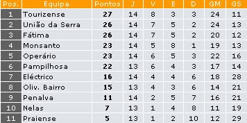 6º Canas de Senhorim 22 pontos (15 jogos)